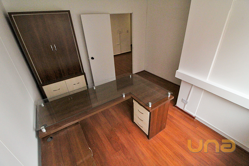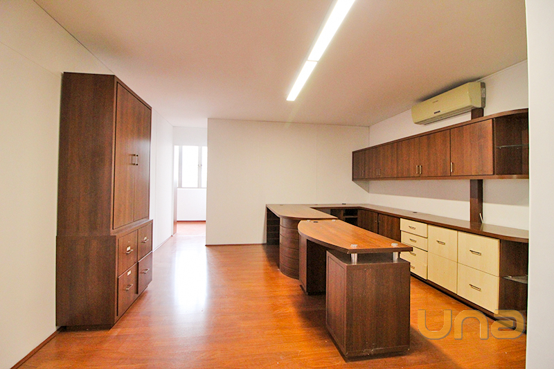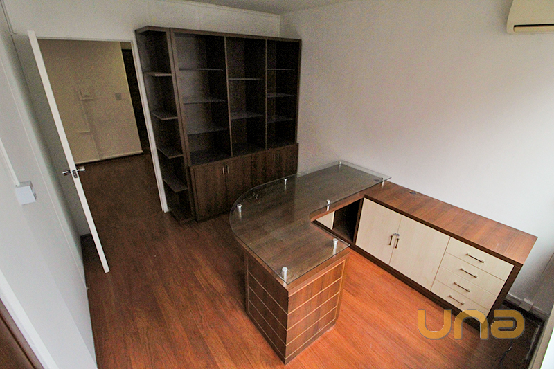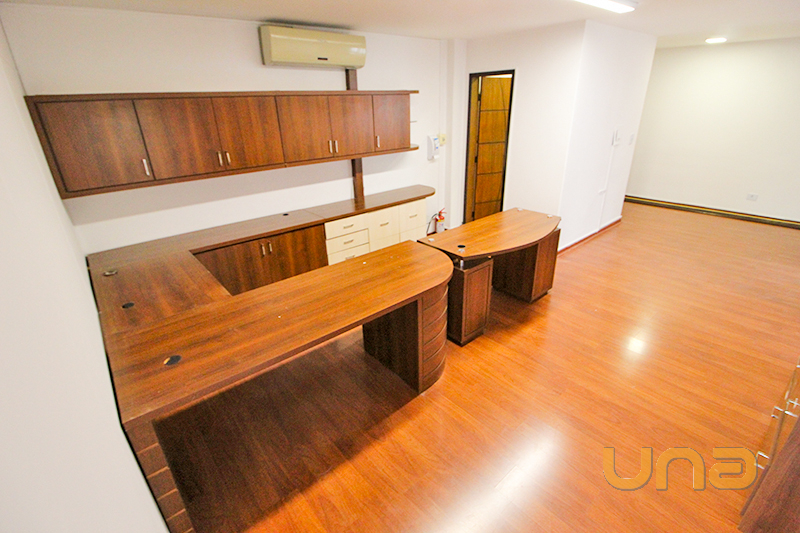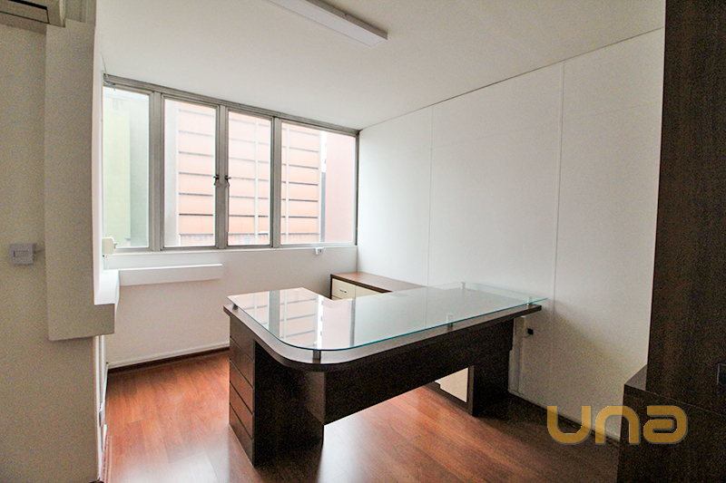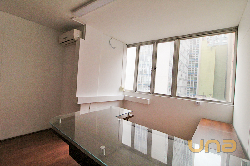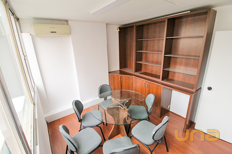01 Sala com armário, 01 mesa em tampo de vidro com ar-condicionado e persiana;