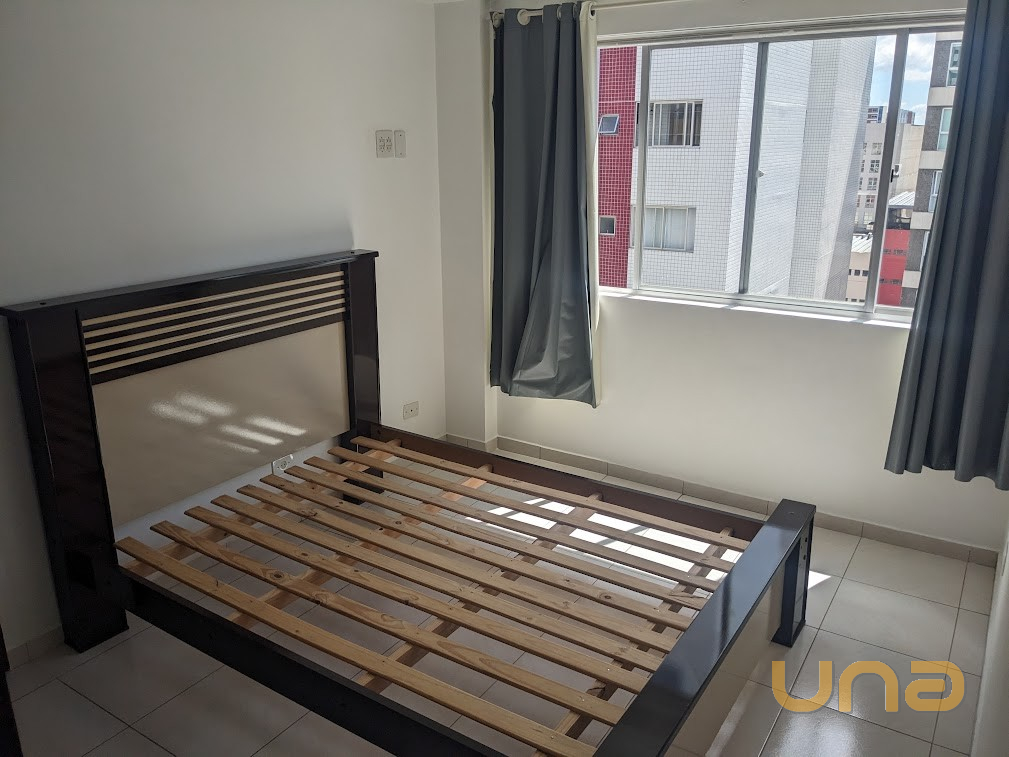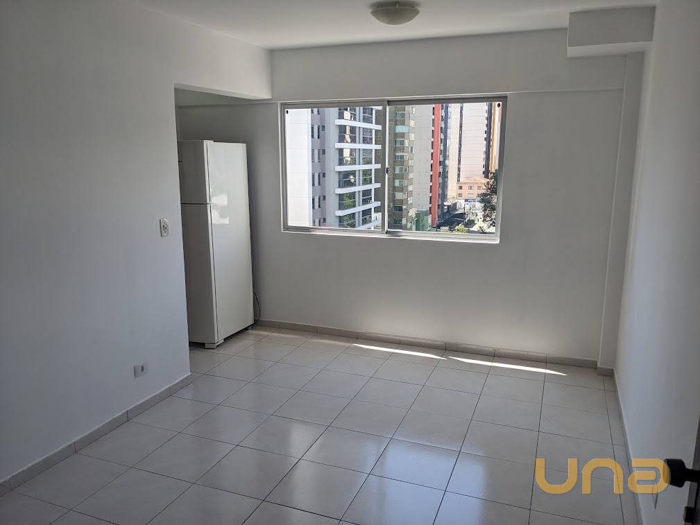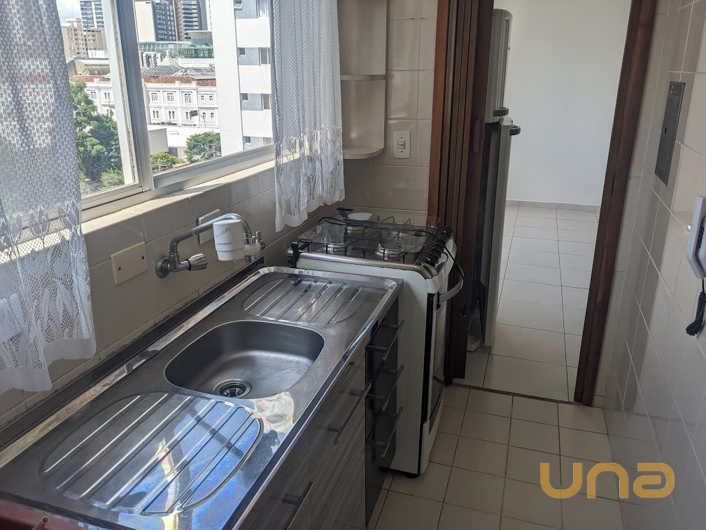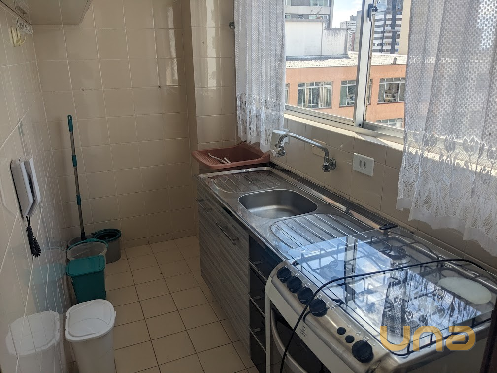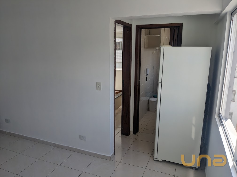 Ensolarado, ótima vista para a praça Oswaldo Cruz - piso cerâmica, dormitório com armário e cama casal (sem colchão), cozinha com armários, fogão e geladiera duplex.