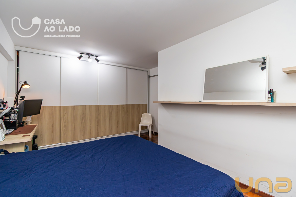 Possui lavabo com pia em granito, armários planejados e espelho, garantindo praticidade e bom gosto. A sala de estar é ampla, com piso de taco, painel para TV e armários, proporcionando um ambiente acolhedor e perfeito para receber familiares e amigos.