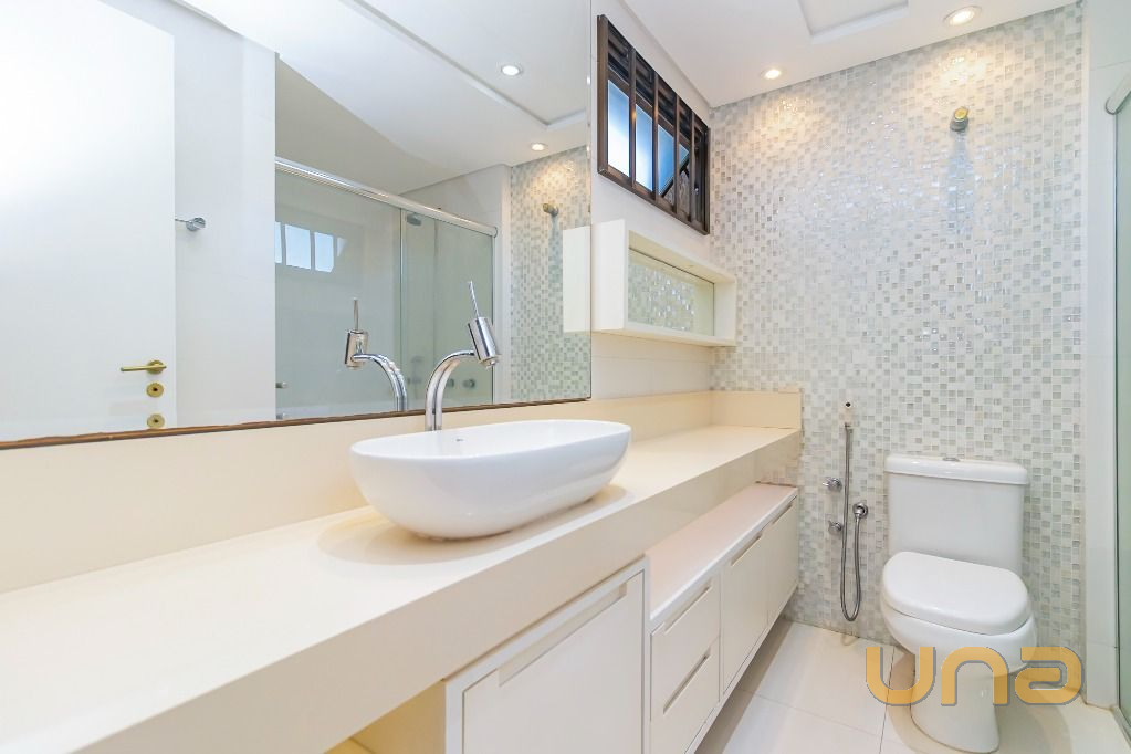Os banheiros foram reformados e os tampos são em silestone.