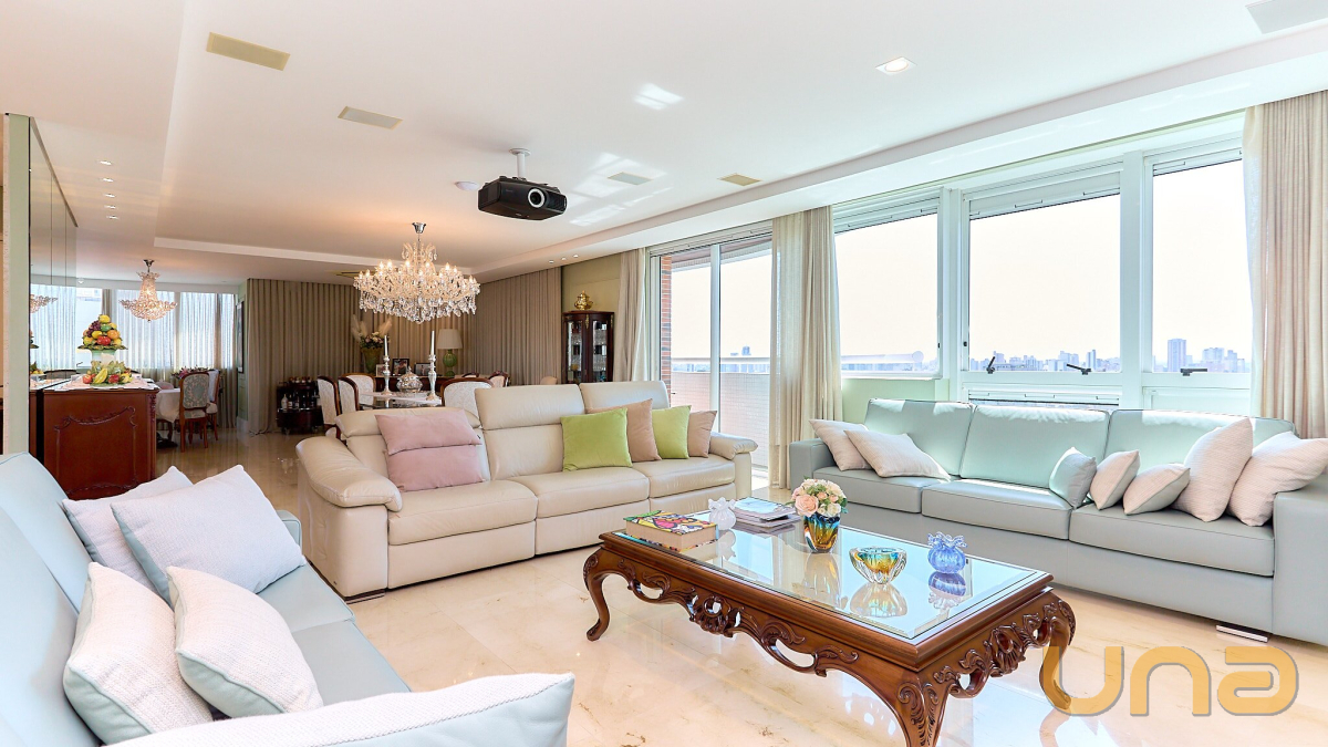 São 287m² privativos, distribuídos em 4 suítes, 3 vagas de garagem e uma área social pensada para proporcionar conforto, integração e requinte.
