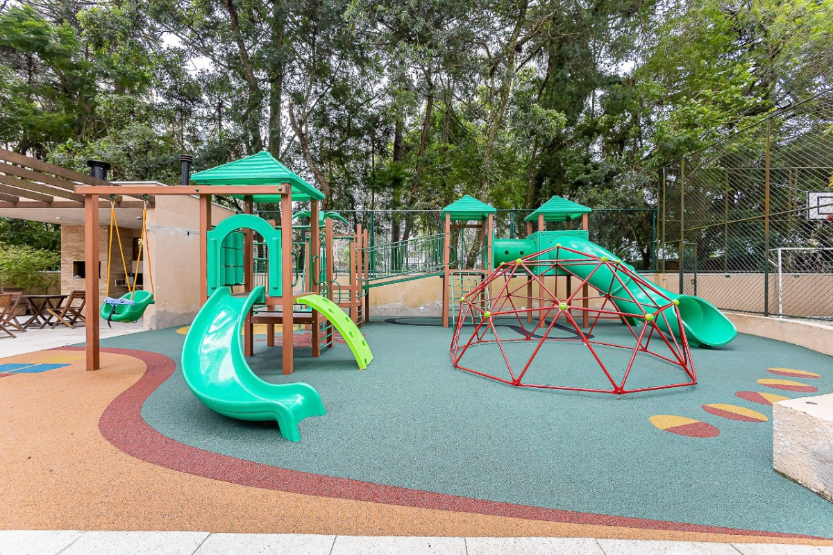 Áreas de lazer com piscina, quadra poliesportiva e playground
