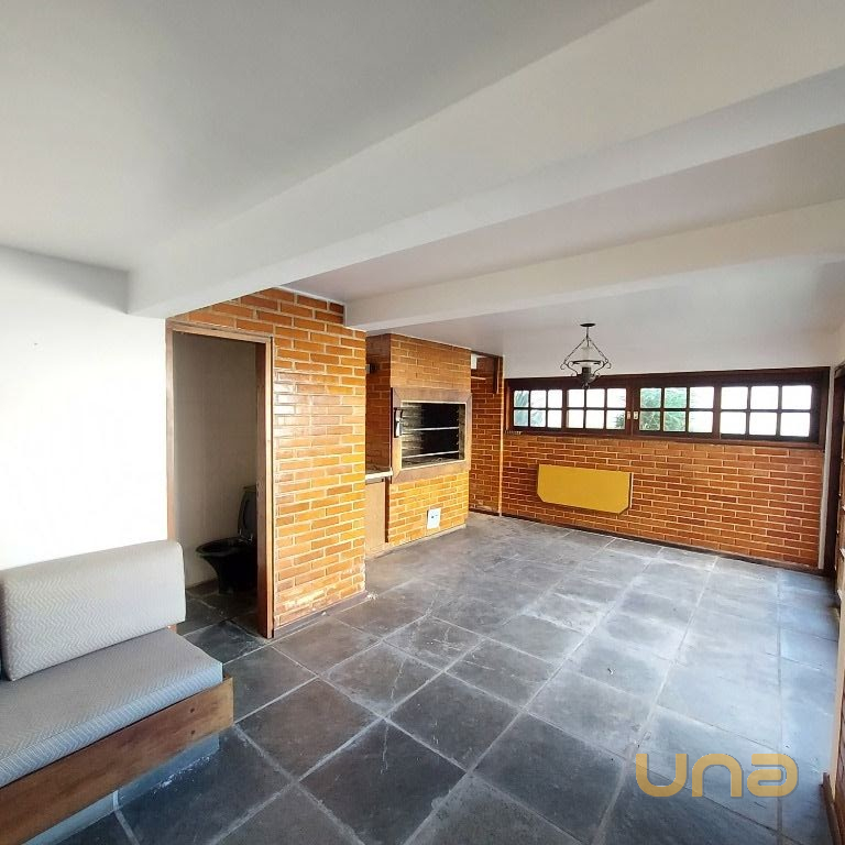 PISO INFERIOR: - Amplo salão para festas (churrasqueira) com lavabo, depósito, garagem coberta para 03 carros. Jardim e quintal.