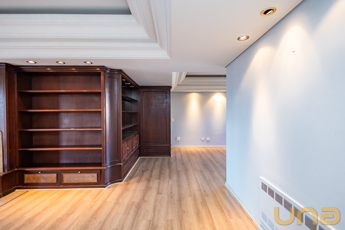 Piso laminado novo nos dormitórios e madeira maciça na sala. Armários planejados nos dormitórios, banheiros, escritório, cozinha e dependência de empregada. Ar condicionado no escritório e em dois dormitórios.