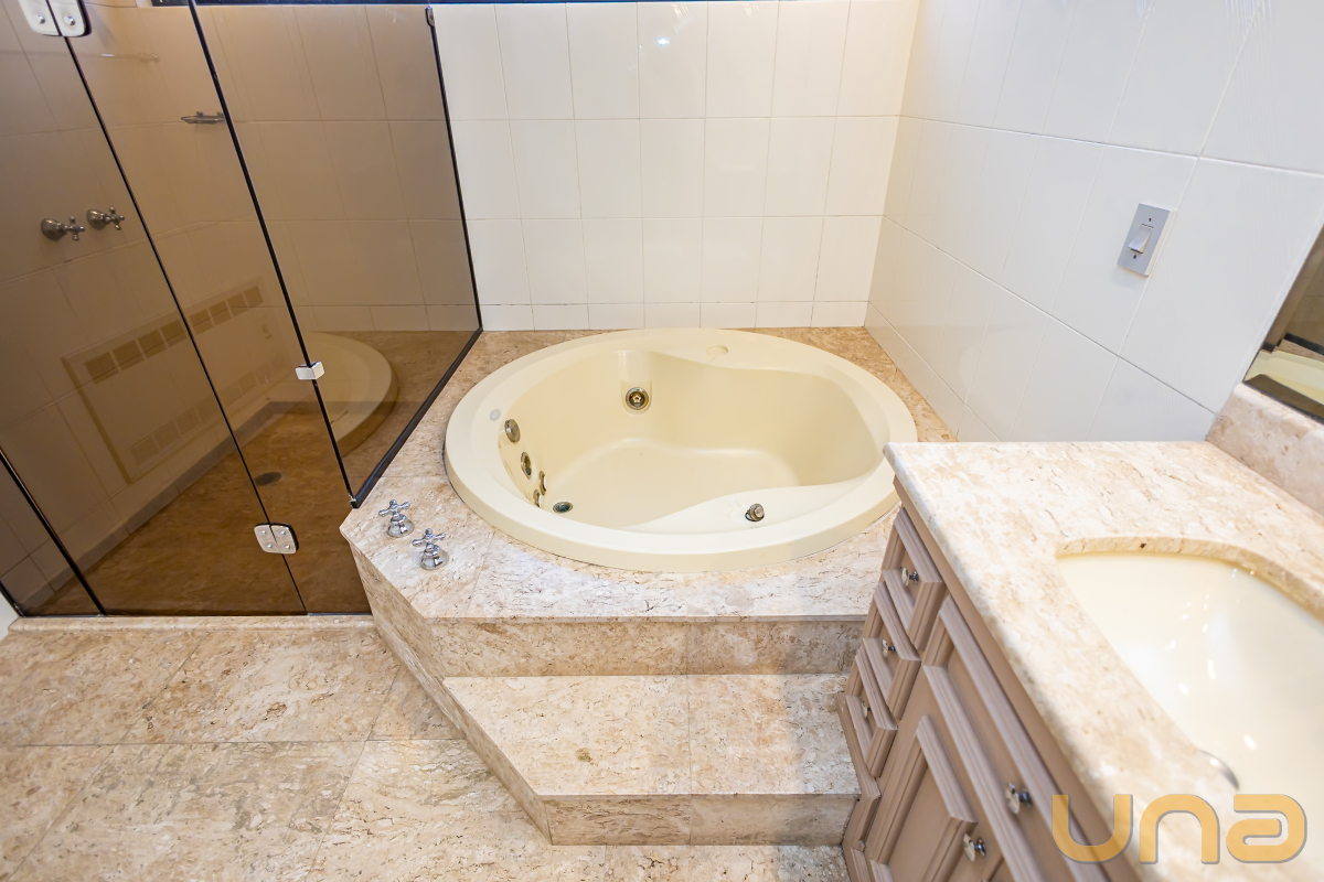 Apartamento com 4 suites, a principal com hidromassagem, amplo closet, espaçosa sacada, escritório, lavabo, sala de jantar, sala de estar, sala de TV e sala íntima, copa, cozinha, área de serviço, despensa e dependência completa de empregada.